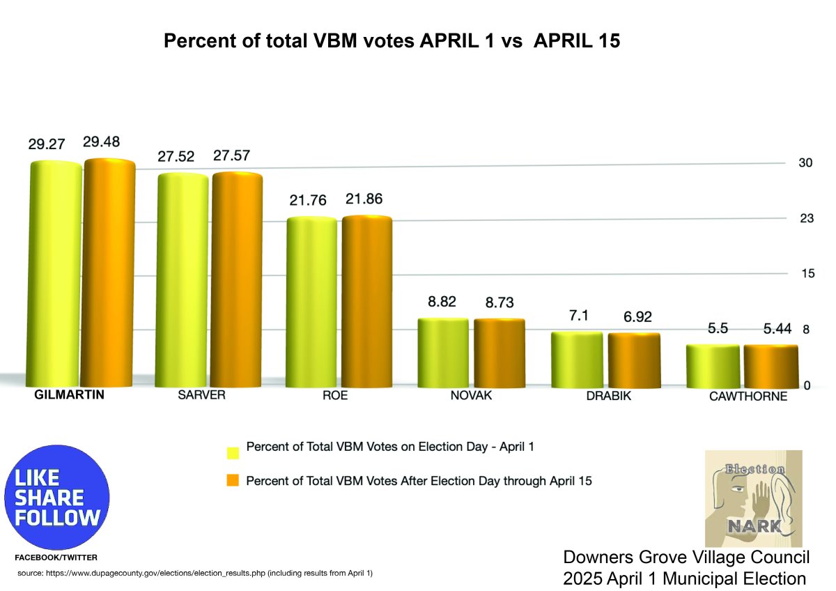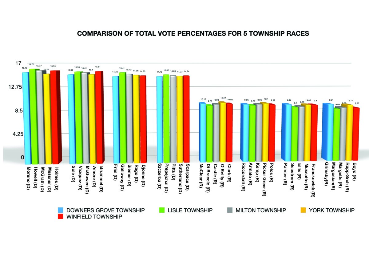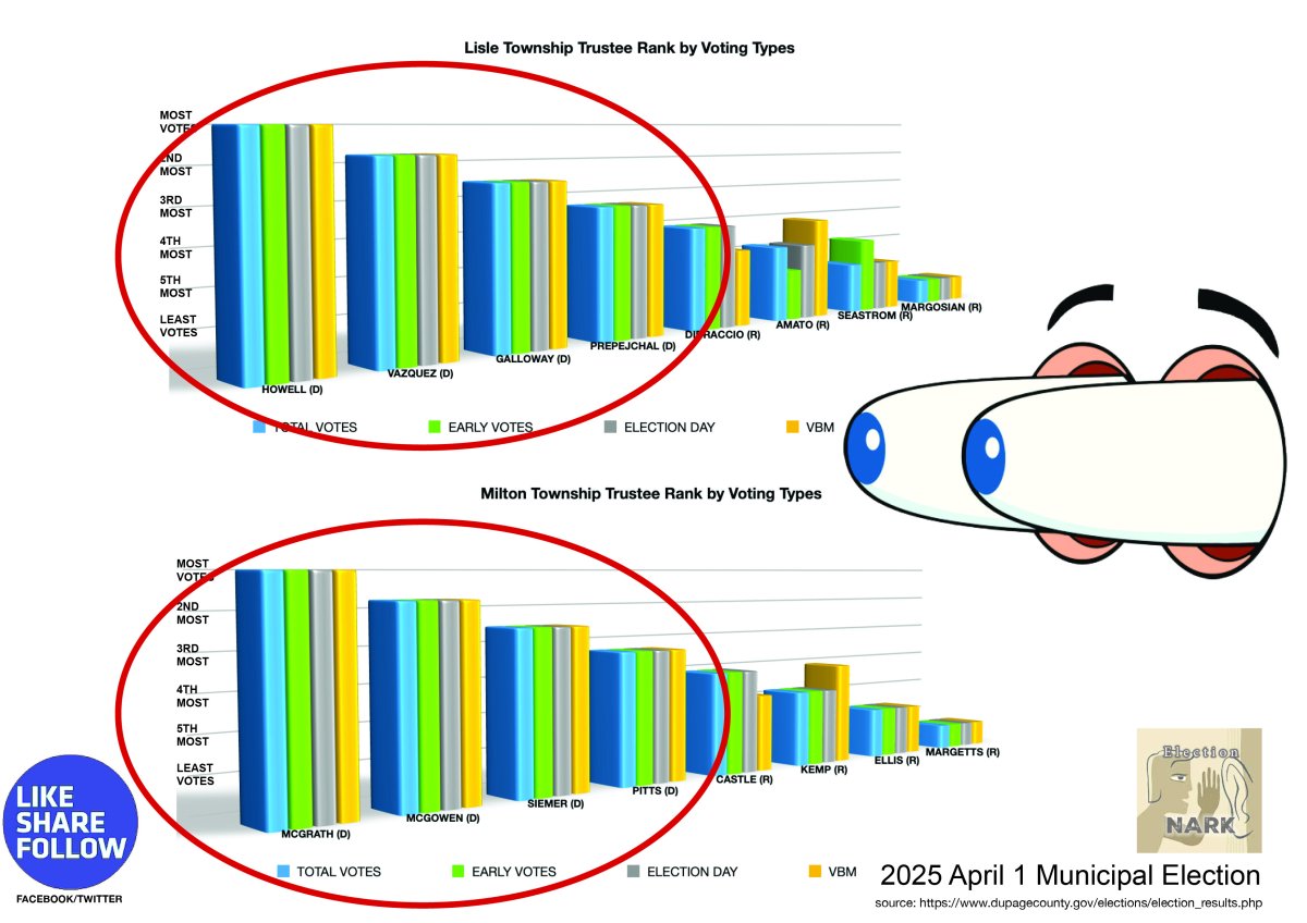 HUH? 5 Townships in DuPage County have almost the exact same vote percentages for the 8 candidates? See More...